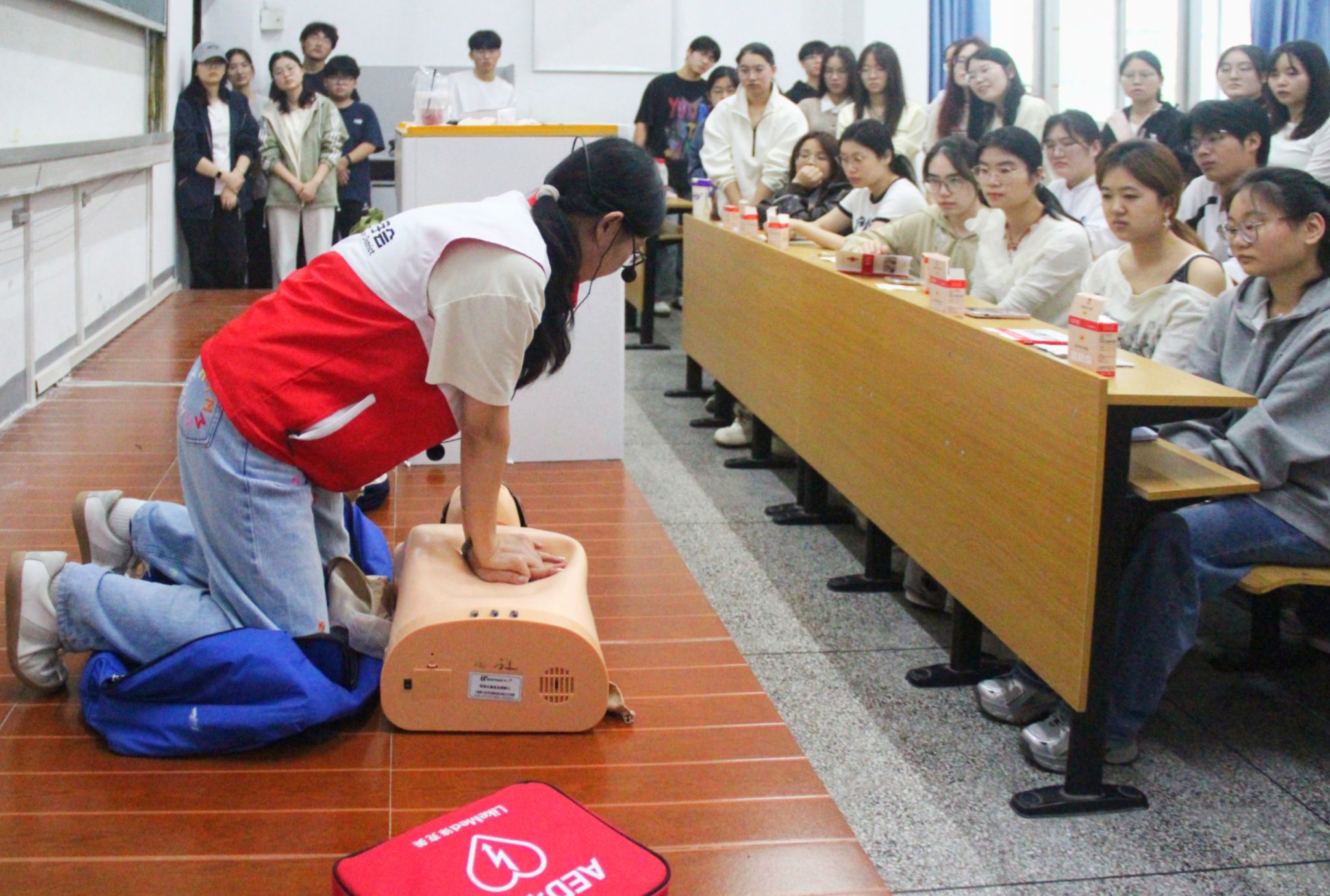 通过此次应急救护知识培训,参训师生应急避险意识与自救互救能力得到提升,为构建平安、和谐、互助的校园环境奠定了坚实基础。(撰稿:孙诗婷 罗妍 摄影:张宇欣 兰圣慈 审核:方蓬)