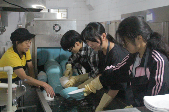 活动前期,活动负责人,劳动实践教育指导员工潘源与食堂负责人密切对接策划,将志愿者分为原料准备、桌椅擦拭、餐具清洁三个小组,并安排食堂员工全程指导劳动实践。活动中,同学们提前到岗,认真接受岗前培训,穿戴好工作服,迅速投入各自岗位,处理食材、回收并清洗餐具、清理卫生死角,大家一丝不苟地完成每一项任务。