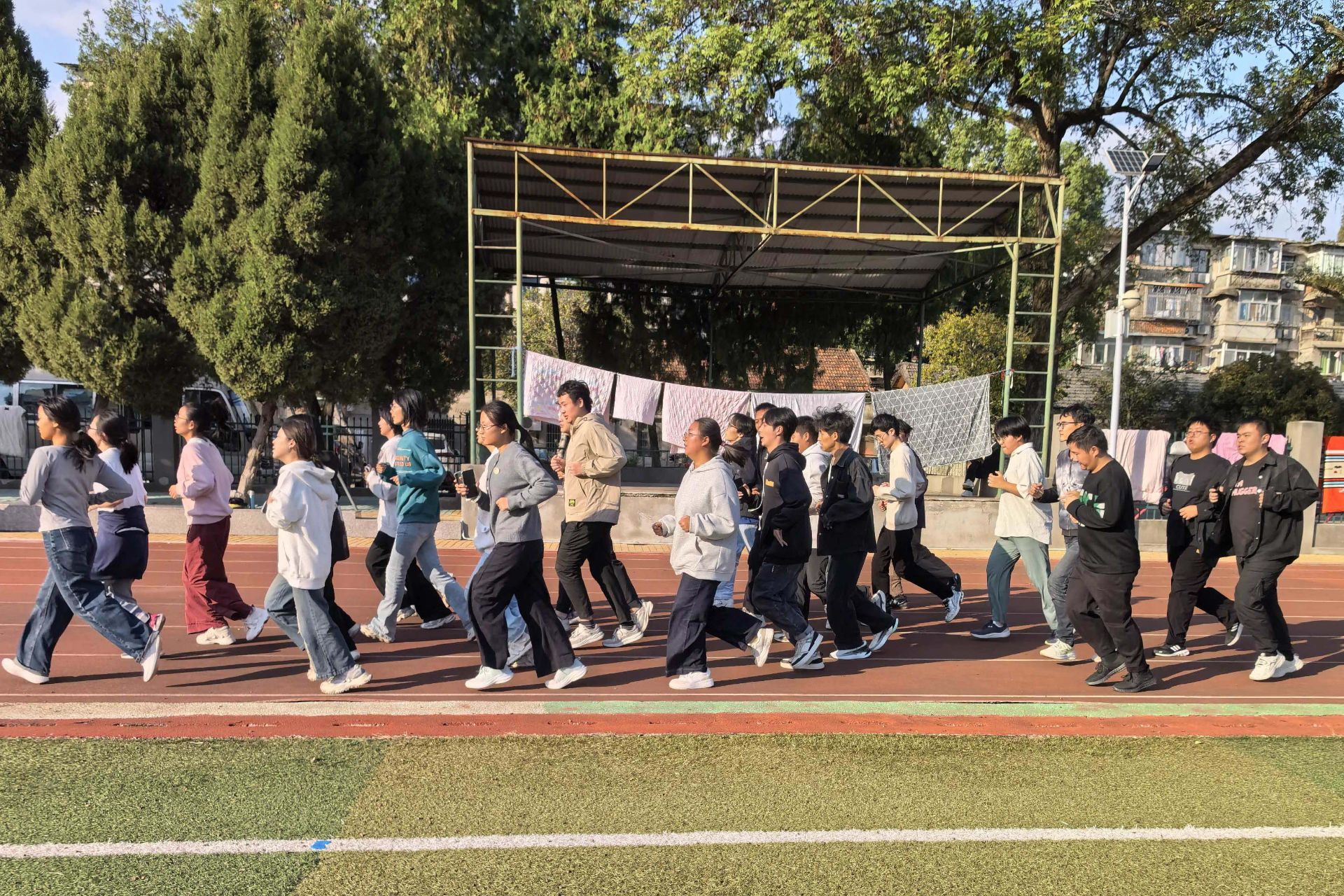 活动开始,伟德国际1946源自英国体育运动指导员工潘源针对同学们跑步中易出现的耐力不足、节奏不稳等问题进行现场示范与指导,帮助同学们掌握正确的摆臂、跨步动作与呼吸方法。“经过老师的点拨,我纠正了错误的姿势,运动节奏感觉更顺畅了。”2025级中国语言文学类专业文典班的薛佳同学说。