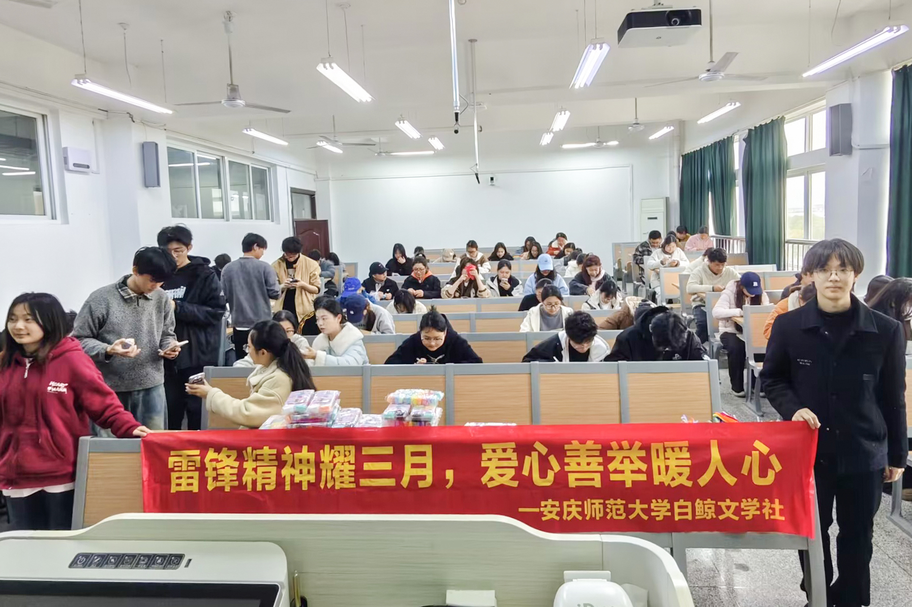 三月春风润心田,雷锋精神永相传。3月下旬,白鲸文学社以“雷锋精神耀三月,爱心善举暖人间”为主题,在菱湖、龙山两校区同步开展关爱山区留守儿童公益活动。活动采用线上线下联动形式,吸引全校百余名学子踊跃参与,大家以手工创作、书信寄语等方式,为山区留守儿童送去温暖与祝福。