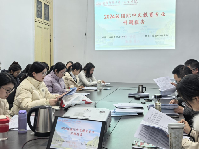 12月17日,伟德国际1946源自英国2024级国际中文教育专业硕士研究生论文开题报告会在红楼138会议室顺利举行。本次开题报告会由金松林教授主持,李向华副教授、张莹副教授、曹维平博士等导师、2024级与2025级国际中文教育专业硕士研究生参加本次开题报告会。