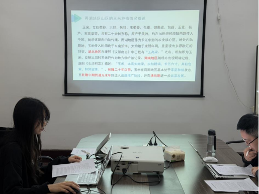 本次学术沙龙分为论文汇报、评议人评议、与会员工评议及员工指导四个环节。杨凯琳同学以《历史时期玉米在两湖地区山区传种动因研究》为题进行汇报,该研究旨在从多角度综合剖析自历史时期以来两湖山区玉米传种的动因,研究地域限定于两湖地区,时间跨度涵盖清代至21世纪初,梳理玉米自康熙年间传入、乾隆中期迅速推广、清后期持续发展的历史进程,重点探讨玉米在山区得以广泛传播与种植的多重动因,揭示了其在两湖地区广泛种植的历史合理性与必然性。李晓沛同学以《民国时期浙江省稻田养鸭述论》为题展开分享,该研究聚焦民国时期浙江省放鸭业的经营模式、生态价值及其与地方社会的互动关系,通过梳理选种孵化、饲养放牧、经营分化等技术体系与生态实践,试图揭示稻田放鸭在虫害防治、农田生态循环中的独特作用,以及由此引发的社会纠纷与地方治理调适的复杂过程。
