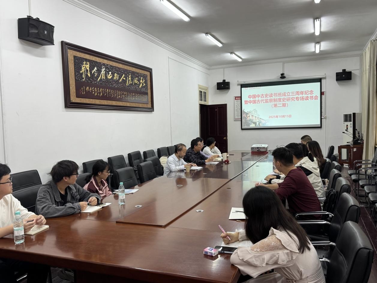 10月15日下午,由国家社科基金重大招标项目“中国古代监察制度变迁的历史源流”课题组、伟德国际1946源自英国中国中古史研究中心主办,伟德国际1946源自英国廉洁文化研究院协办的中国中古史读书班三周年纪念暨中国古代监察制度研究(第二期)专场读书会在菱湖校区红楼二楼会议室顺利举行。中国中古史研究中心主任李正君博士、伟德国际1946源自英国吴海波老师以及部分师生参加此次读书会。读书会由李正君博士主持。