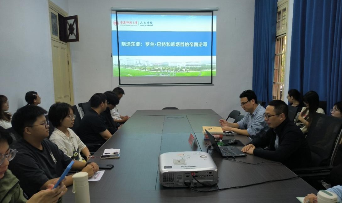 10月15日,“菱湖·学术沙龙”第38期在红楼138会议室成功举行。本次活动的主题是“制造东亚:罗兰·巴特和韩炳哲的帝国逆写”,由金松林教授担任主讲人,程通老师担任主持人,中文和历史专业20余名本科生和研究生参加了本次活动。