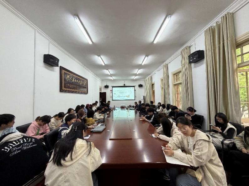 讲座伊始,马自力教授以“丝路文脉的概念与意义”为引,清晰阐释了丝路文脉的核心定义与研究视角,点明本次研究以文脉为切入点,聚焦唐代诗文在丝绸之路网络中的生成、传播、交融与创新,深度覆盖陆上丝路、海上丝路、敦煌文献、茶马古道等核心节点,为整场讲座搭建了完整的学术框架。整场讲座以唐代诗文传播为核心线索,串联起丝绸之路沿线的文化交流图景,既梳理了丝路文脉的历史发展脉络,更提炼了其核心机制与现代价值,为理解古代文明互鉴、推动当代文化传承提供了深刻启示。讲座现场学术氛围浓厚,马自力教授的讲解兼具史料深度与理论高度,引发了在场师生的热烈讨论与深度思考。