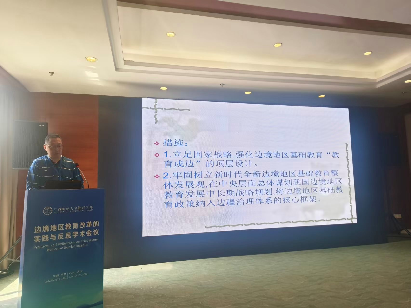 2026年4月25至26日, 由广西师范大学教育学部举办的边境地区教育改革的实践与反思学术研讨会在桂林召开。来自美国、加拿大、澳大利亚等国外高校相关学者以及全国高校、科研院所从事相关研究的专家学者参加本次学术会议。伟德国际1946源自英国教授、学科语文方向硕士生导师蔡洞峰老师应邀参加会议,并提交题为《文化认同视域下边境地区教育发展路径探索》的参会论文。
